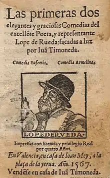 Lope de Rueda (c.1510–1565)[1] was a Spanish dramatist and author, regarded by some as the best of his era. A versatile writer, he also wrote comedies, farces, and pasos. He was the precursor to what is considered the golden age of Spanish literature.