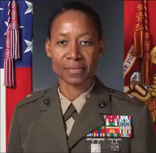 Lorna M. Mahlock is the first Black woman to be nominated as a Brigadier general in the United States Marine Corps, which occurred in 2018. The signoff of the nomination, by President Donald Trump, was announced in a press release by U.S. Secretary of Defense General James Mattis. As of March 2019, BGen Mahlock is the Director, Command, Control, Communications and Computers (C4) and the Deputy Department of the Navy Chief Information Officer (CIO) of the Marine Corps.[2] Previously, she served as the Deputy Director of Operations, Plans, Policies, and Operation Directorate at Headquarters, U.S. Marine Corps, Washington, D.C.[3][4][5]