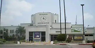 The Los Angeles Maritime Museum is housed in the former Municipal Ferry Terminal building, located on the main channel of the Los Angeles Harbor. It was designed in the Streamline Moderne style by architect Derwood Lydell Irvin of the Los Angeles Harbor Department.[2] It was built in 1941 at Berth 84, by the Works Project Administration (WPA).[3][4]