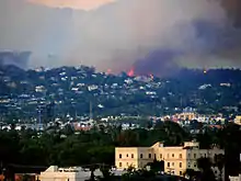 On May 8–9, 2007, about 800 acres (3.2 km2) of uninhabited terrain in Los Feliz and Griffith Park, including the famous Dante's View, were destroyed in a wildfire.[12] After the fire, Los Angeles city officials pledged millions of dollars in aid to repair the damage.[13]