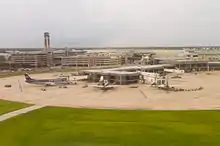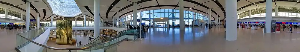 The terminal is on the north side of the airfield and has 35 gates.[37] Departures and Ticketing are on Level 3, TSA Security Screening is on Level 2, and Arrivals and Baggage Claim are on Level 1.[38]