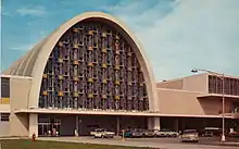 When commercial service began at Moisant Field in 1946, the terminal was a large, makeshift hangar-like building—a sharp contrast to airports in then-peer cities. A new terminal complex, designed by Goldstein Parham & Labouisse and Herbert A. Benson, George J. Riehl and built by J. A. Jones Company, debuted in 1959 towards the end of Mayor DeLesseps "Chep" Morrison's administration. The core of this structure formed much of the facility used until November 2019.[5] Retired United States Air Force Major-General Junius Wallace Jones served as airport director in the 1950s. During his term, the airport received many improvements.