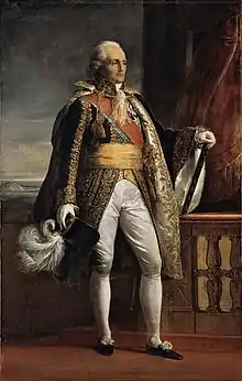 Musnier became a Member of the Légion d'Honneur on 11 December 1803 and a Commander of the Légion on 14 June 1804.[1] He was promoted to general of division on 1 February 1805.[2] The year 1807 found him employed in coast defence in France.[1] At this time Napoleon made the unwise decision to seize Spain by force and expel King Charles IV and his royal family. Using various pretexts, he introduced 70,000 French troops into Spain. On 16 February 1808, the French armies seized control of a number of important places and soon afterward sent the Spanish ruling family to be detained in France. On 2 May 1808, Spain exploded in revolt against the French occupation forces, initiating the Peninsular War.[6] Among the first French forces in Spain, Musnier commanded the 1st Division in the 24,430-strong corps of Marshal Bon-Adrien Jeannot de Moncey. His division numbered 9,700 soldiers in 17 battalions.[7]