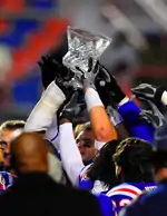 Holtz's first season, the 2013 campaign, was a rebuilding year as the Bulldogs finished 4–8.[73] However, 2014 would see a big improvement. Holtz's Bulldogs went on to finish first in C-USA West at 9–5[74] with a 35–18 win over Illinois in the Heart Of Dallas Bowl.[75] In 2015, the Bulldogs continued their success finishing 9–4[76] and winning the New Orleans Bowl over Arkansas State, 47–28.[77] In 2016, Holtz's Bulldogs finished 9–5.[78] They won the C-USA West Division title and lost in the conference championship game against East Division champion Western Kentucky.[79] Tech then accomplished their third consecutive bowl victory by defeating Navy in the Armed Forces Bowl by kicking a late field goal to win 48–45.[80] In 2017 Louisiana Tech handily defeated SMU in the Frisco Bowl 51-10 in Frisco, TX. Tech's fifth consecutive bowl win was in 2018 when the Bulldogs defeated Hawaii in the Hawaii Bowl 31-14. In 2019, the Bulldogs finished 10-3 and continued the FBS' longest bowl winning streak at 6 with another victory over a P5 team in the Independence Bowl, defeating Miami, 14-0. It was the first G5 shutout of a P5 team ever in a bowl game and it was the first shutout in the Independence Bowl's 40+ years history.