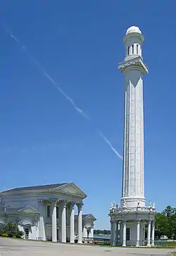 Two years later, in 1780, the Virginia General Assembly approved the town charter of Louisville. The city was named in honor of King Louis XVI of France, whose soldiers were then aiding Americans in the Revolutionary War. Early residents lived in forts to protect themselves from Indian raids, but moved out by the late 1780s.[18] In 1803, explorers Meriwether Lewis and William Clark organized their expedition across America in the town of Clarksville, Indiana at the present-day Falls of the Ohio opposite Louisville, Kentucky.[19][20]
