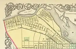 Serious plans for a canal circulated throughout the early 1800s, with Cincinnatians in particular advocating a northern route through Indiana in order to blunt competition from Louisville. Canal companies were chartered by the state legislatures of both Kentucky and Indiana in 1805, but nothing came of either effort.[6] In 1808, the Secretary of the Treasury Albert Gallatin suggested national funding for a Kentucky-side canal. The United States Senate passed bills to this effect in 1810 and 1811, but both died from Democratic opposition in the House.[7] Gen. William Lytle II, founder of Cincinnati, laid out Portland in 1811 and sold lots in order to finance his own canal project. The Indiana Canal Company, that state's second effort, was chartered in 1818 and made preliminary excavations using private and state funds. The failure of a dam and the Panic of 1819 ended the attempt.[6] Rumors that the Indianan dam had been sabotaged arose from the risk a canal posed to much of Louisville's economy, including not only forwarding, storage, drayage, and shipping but also provisioning, financing, hotels, and entertainment. Against this, however, some locals argued for the benefit a canal would provide to local manufacturing.[1]