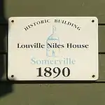 The identifying sign on the face of the Louville Niles House