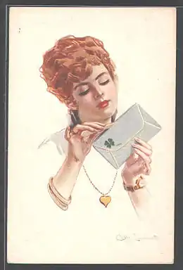 In Ancient Rome, "the tricky construction and reception of the love letter" formed the center of Ovid's Ars Amatoria or Art of Love: "The love letter is situated at the core of Ovidian erotics".[4] The Middle Ages saw the formal development of the Ars dictaminis, including the art of the love letter from opening to close. For salutations, "the scale in love letters is nicely graded from 'To the noble and discreet lady P., adorned with every elegance, greeting' to the lyrical fervors of 'Half of my soul and light of my eyes . . . greeting, and that delight which is beyond all word and deed to express'".[5] The substance similarly "ranges from doubtful equivoque to exquisite and fantastic dreaming", rising to appeals for "the assurance 'that you care for me the way I care for you'".[6]