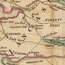 The Leven was navigable nearly to Low Wood Bridge, which may have been erected by the company.[16][15] Fayrer, who died in 1801, was a former slaver captain, and was the company's agent in Liverpool, an important export market for gunpowder in particular to West Africa. He also was in charge of the import via Ulverston of raw materials. Wilson's uncle Thomas Parke operated there. Fayrer's role was taken over by the firm of Preston & Winder, with Gerrard Preston, a slaver captain and merchant from Lancaster.[17] He had died by 1804, his firm having been wound up at the start of 1803.[18][19]