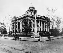The first courthouse at Valdosta was built in 1860 and was a wooden structure that was sold for the funding of a new courthouse by 1869. The wooden building used for the courts of ordinary burned down in 1869. Lowndes County was without an official courthouse for a number of years. A two-story brick building was completed in 1874. In 1900, county commissioners decided that a larger structure was needed. In March 1904 the old courthouse was demolished and in 1905, the seventh courthouse was completed. This is the structure that is locally referred to in the 21st century as 'the old courthouse.' In August and September 2010, the county government moved to a new judicial complex.[14]