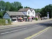 Ludham Bridge Stores. General store and restaurant, plus art gallery, chandlery/boat bits store, bike hire, and a place making reed fencing all in this cluster.