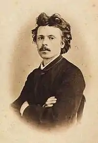 He was born to a family of merchants. When he was six, they moved to Copenhagen. At the age of eighteen, he passed the journeyman test to enter the Royal Danish Academy of Fine Arts.[1] He studied with Niels Simonsen and Wilhelm Marstrand and was awarded two silver medals, in 1860 and 1861, when he began exhibiting portraits and small figure compositions.[1] During 1860, he made a brief study trip to Belgium and the Netherlands.