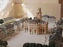 Ludwigskirche and the surrounding Ludwigsplatz (Ludwig's Square) were designed as a "complete work of art", in the sense of a baroque place royale, by Friedrich Joachim Stengel on the commission of Prince William Henry. Construction was begun in 1762. After the death of William Henry in 1768, work on it was stopped due to lack of funds. The church was finally completed in 1775 by his son, Louis, and it was also named after him. The consecration of the church took place on August 25, 1775, with a church service and a cantata composed especially for the occasion.