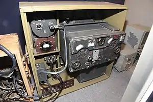 FuG 10 series: A family of transceivers for both R/T and W/T communications. The German FuG 10 panel, or rack, contained two transmitters and two receivers: One transmitter and its companion receiver operated in the MF or Longwave; 300 to 600 kHz (1,000 to 500 m) range and the other transmitter and its companion receiver operated in the HF or Shortwave range; 3 to 6 MHz (100 to 50 m). Most of the FuG 10 series used a fixed wire aerial between the fuselage and tailfin or a retractable trailing aerial wire. The FuG 10P replaced the standard E 10L longwave receiver with an EZ6 unit for a G6 direction finding set. The FuG 10ZY incorporated a fixed loop D/F aerial and a homing device for navigation to a ground station. This loop aerial, usually fitted on a small, "teardrop" shaped mounting, was standard equipment on most fighter aircraft from late 1943 on. Manufactured by Lorenz.[1][2] Typical power was 70 watts.