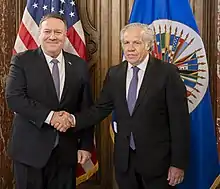 Luis Leonardo Almagro Lemes (Spanish pronunciation: [ˈlwis alˈmaɣɾo]; born June 1, 1963) is a Uruguayan lawyer, diplomat, and politician, currently serving as the 10th Secretary General of the Organization of American States (OAS). He also served as Minister of Foreign Affairs between 2010 and 2015, during the Presidency of José Mujica.