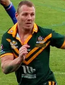 Lewis was picked as 18th man for the Australian side to play in the 2009 Anzac Test, but did not play. Lewis was named as 18th man for the squad to represent New South Wales in the opening State of Origin match on 3 June, in Melbourne. He was subsequently called into the team following the suspension of Glenn Stewart, his first appearance in Origin since 2004.[15] Lewis played 15 matches and scored 5 tries for the Panthers. At the end of the season, he travelled to Europe with Australia for the 2009 Four Nations tournament, and was selected to play and made his debut against England off the interchange bench in the 26–16 win at JJB Stadium.[16] Lewis played in 3 matches and scored a try for the Kangaroos including playing at second-row in the 46–16 Final win against England.[17][18]