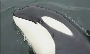 Luna was born into a population known as the Southern Resident Community,[1][2] consisting of three families called "pods": J-pod, K-pod and L-pod.[3] This population, which consisted of approximately 83 killer whales at the time of Luna's birth, was studied since the 1970s.[3] Scientists recognized each individual in the population by photo-identification, and tracked individual movements and social relationships over decades.[3] Luna was born into a group in L-pod known as the L2 matriline, which consisted of the matriarch, Grace (L2), Luna's uncle, Orcan (L39), Gaia (L78), Wavewalker (L88), and Luna's mother, Splash (L67).[4] Luna was first seen on the morning of September 19, 1999, near the San Juan Islands of Washington state as a newborn alone with his mother.[1][4] Later that day, Luna was seen leaving his mother to follow orcas from K-pod, and did not reconnect with her until several days later.[2] On September 26, Luna was seen nursing from Splash (L67).[4]