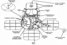 The photographic film was developed in-orbit with a semidry process, and then it was scanned by a photomultiplier for transmission to Earth. This system was adapted under permission of the NRO from the SAMOS E-1 reconnaissance camera, built by Kodak for a short-lived USAF near-realtime satellite imaging project.[4]