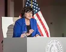 In December 2017, Valdez announced her candidacy for Governor of Texas in the 2018 gubernatorial election against incumbent Republican Governor Greg Abbott.[13] In the March 6, 2018 Primary she got more votes than any other Democrat, leading her closest competitor, Andrew White, son of former governor Mark White, by 16 percent. However, she only received 43% of the vote, forcing a run-off against White. The run-off occurred on May 22, 2018, resulting in Valdez's victory and making her the first Latina and first openly gay person nominated for governor by a major party in the state.[14] Abbott won the election.[15]