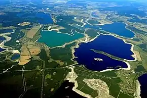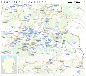 The Lusatian Lake District[1][2][3] (German: Lausitzer Seenland, Lower Sorbian: Łužyska jazorina, Upper Sorbian: Łužiska jězorina) is a chain of artificial lakes under construction in Germany across the north-eastern part of Saxony and the southern part of Brandenburg. Through flooding as a part of an extensive regeneration programme, several decommissioned lignite opencast mines are in the process of being transformed into Europe's largest artificial lake district. However, the requirements of the project, especially the necessary water resources, are controversial.