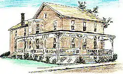 Upon attaining adulthood, David King obtained an apprenticeship as a store clerk in Portsmouth, Ohio, where he met teenage Almena Caldwell. Her older brother and father fell from a small boat and drowned in the nearby Scioto River. Soon thereafter, Almena's mother died. Her uncle Hannibal Gilman Hamlin (first cousin to Lincoln's first Vice President, Hannibal Hamlin) became the guardian of her and her brother, Hamlin Caldwell, moved them to Cincinnati and saw to their education. David King married her there when she was seventeen. Gotwald wrote a biography of his parents-in-law in which he pointed out sternly that Almena was too young to marry at seventeen.[25] The Kings moved to Tarlton, Ohio, where they opened a general store. Several of Robert Quigley's (her father's foster father) grandchildren moved to Springfield, Ohio.[26] So, David and Almena King moved there as well in 1840. David proceeded to build a significant portion of early downtown Springfield, which was known for long thereafter as "King's Row".[27] David King died on August 8, 1849, in a cholera epidemic, which he contracted while caring for other victims of the outbreak.[28][29] According to the Gotwald heresy book, Almena built the Ferncliff Place homestead (which was out in the country when built) to get her boys away from the bars near their home in Springfield proper.[30]