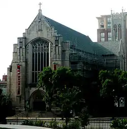 Luther Memorial Church was founded in 1907 as a Bible study group. Later the congregation rented space in a synagogue for weekly worship, then moved into its first permanent location at 626 University Avenue, a designated Madison landmark once called Luther Memorial Chapel and now known as the Church Key Bar and Grill.[1] In 1923 Luther Memorial moved into its newly built Neo-Gothic building at 1021 University Avenue.[2][3] This building was designated as a Madison Landmark in 2011,[4] and was listed on the National Register of Historic Places in 2018.