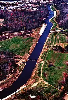 Aerial view of the Luxapalila Creek running through the center of Columbus, Mississippi, U.S.