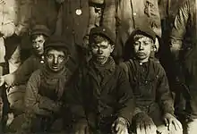 Also, in the early 1900s, the anthracite coal mining industry — and its extensive use of child labor — was one of the industries targeted by the National Child Labor Committee and its hired photographer, Lewis Hine. Many of Hine's subjects were photographed in the mines and coal fields in and around Pittston and Wilkes-Barre. The impact of the Hine photographs led to the enactment of child labor laws across the country.[28]