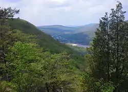 The Wyoming Valley – also referred to as the Anthracite Valley Section of Pennsylvania – runs directly through Luzerne County. It extends from the northeastern border (with Lackawanna County) to the western border (with Columbia County). The valley is flat (at the Susquehanna Basin) and rises from 512 feet (156 m) to 2,000 feet (610 m) in some places. Bear Creek, on the eastern side of the valley, has a mean elevation of about 2,000 feet (610 m), while Shickshinny, on the Susquehanna Basin, is about 512 feet (156 m). The county is crossed by a series of east-to-west mountains (e.g., Buck Mountain, Nescopeck Mountain, Penobscot Knob, and Red Rock Mountain). They are all part of the Appalachian Mountain Range.
