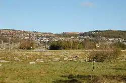 The village is a residential area that was built in the hills so that the flat, agricultural areas could continue to be used for farming. It is just to the south of the mountain Njåfjellet and the village has views of the flat plains of Jæren below.[3]