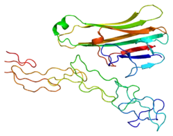 Lymphotoxin-alpha (LT-α) or tumor necrosis factor-beta (TNF-β) is a protein that in humans is encoded by the LTA gene.[5][6] Belonging to the hematopoietic cell line, LT-α exhibits anti-proliferative activity and causes the cellular destruction of tumor cell lines.[5] As a cytotoxic protein, LT-α performs a variety of important roles in immune regulation depending on the form that it is secreted as. Unlike other members of the TNF superfamily, LT-α is only found as a soluble homotrimer, when found at the cell surface it is found only as a heterotrimer with LTβ.[7]
