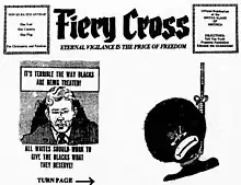 Though some photographs were sold as plain prints, others contained captions. These captions were either straightforward details—such as the time, date and reasons for the lynching—while others contained polemics or poems with racist or otherwise threatening remarks.[71] An example of this is a photographic postcard attached to the poem "Dogwood Tree," which says: "The negro now/By eternal grace/Must learn to stay in the negro's place/In the Sunny South, the land of the Free/Let the WHITE SUPREME forever be."[72] Such postcards with explicit rhetoric such as "Dogwood Tree" were typically circulated privately or mailed in a sealed envelope.[73] Other times these pictures simply included the word "WARNING".[71]
