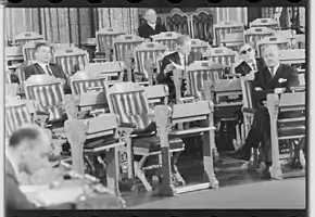 ![]() Prime Minister Lyng (first row, to the far right) in the Storting five days before his cabinet fell. | |