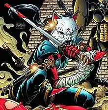 During the "One Year Later" storyline, she had returned from the dead, having been brought back by League of Assassin Mystics, only to be killed again by Batgirl immediately after.[3] Lynx's corpse was put into a Batgirl costume, and Robin was framed by Batgirl for the murder. Robin set off to prove his innocence, and that the girl in the costume was not the real Batgirl. In the end, he was successful.