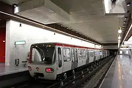 Line B (Ligne B) is a line on the Lyon Metro that runs between Charpennes and Gare d'Oullins. It was constructed using the cut-and-cover method, and went into service on 2 May 1978.[1] Together with Line A, it was one of the inaugural lines of the Lyon Metro. It has since been extended three times: from Part-Dieu to Jean Macé in 1981, from Jean Macé to Stade de Gerland in 2000, and from Stade de Gerland to Oullins railway station in 2013.[1] The line serves 10 stations, and is 7.7 kilometres (4.8 mi) long.[1] Line B trains run on tires rather than steel wheels; it is a rubber-tired metro line.