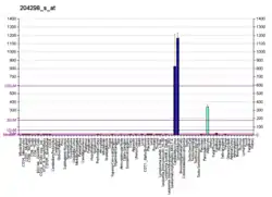 Lysyl oxidase (LOX), also known as protein-lysine 6-oxidase, is an enzyme that, in humans, is encoded by the LOX gene.[5][6] It catalyzes the conversion of lysine molecules into highly reactive aldehydes that form cross-links in extracellular matrix proteins. Its inhibition can cause osteolathyrism, but, at the same time, its upregulation by tumor cells may promote metastasis of the existing tumor, causing it to become malignant and cancerous.
