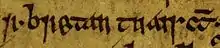 ![]() Máel Coluim's name and title as it appears on folio 5v of British Library Cotton Domitian A VIII (De primo Saxonum adventu): "Malcolm rex Cumbrorum".[1] | |