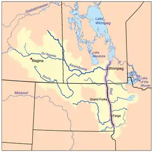 The Metis buffalo hunts were held at two times during a year by the Métis of the Red River settlements during the North American fur trade. The buffalo hunt out of Red River region had three major parties: the Pembina Métis, the Métis of St. Boniface, also known as the Main River party, and the St. Francois Xavier Métis.[11] The Métis of St. Boniface, situated on the banks of the Red River of the North in what is now the city of Winnipeg, Manitoba, Canada, formed the largest contingent of these hunts; composed of a summer hunt and an autumn hunt. By the 1830s, every major hunt had a common form and governance structure.[12] The largest-scale buffalo hunts began a decade later.[12] For the summer hunts, the three parties would gather at Pembina to organize before continuing on to the buffalo hunting grounds.[10]