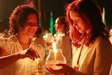 At times, special events are also held, such as a recital of the entire Buddhist scriptures and ceremonies for avowing oneself as a Buddhist lay person.[48] The Dhammakaya Temple is particularly known for its visually grand celebration.[49][50]