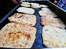 M'semen or msemen (Arabic: مسمن msamman, musamman), is a traditional flatbread originally from the Maghreb, common to Algeria,[1] Tunisia[2] and Morocco. It is usually served with honey or a cup of aromatic morning mint tea or coffee. M'semen can also be stuffed with meat.