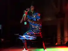 M.I.A.'s stage performances are described as "highly energetic" and multimedia showcases, often with scenes of what Rolling Stone critic Rob Sheffield describes as "jovial chaos, with dancers and toasters and random characters roaming the stage," bringing various crowds with interests in art, music and fashion.[109] Camille Dodero, writing in The Village Voice opined that M.I.A. "works hard to manifest the chaos of her music in an actual environment, and, more than that, to actively create discomfort, energy, and anger through sensory overload."[180] Her role as an artist in and voice lender to the subaltern is appreciated by theorists as having brought such ideas to first world view.[181][182][183][184] USA Today included her on its list of the 100 Most Interesting People of 2007 and she was named one of Time Out 's 40th Birthday London Heroes in 2008. The same year, Esquire listed M.I.A. as one of the 75 Most Influential People of the 21st century, describing her as the first and only major artist in world music, and in 2009 she was cited in Time magazine's Time 100 as one of the world's most influential people for her global influence across many genres.[30][181][185][186] In December 2010, USA Today listed M.I.A. at number 63 on its list of the "100 People of 2010".[187] M.I.A. placed number 14 on Rolling Stone's Decade-End Readers' Poll of "Top Artists Of The Decade."[188] Rolling Stone named her one of eight artists who defined the 2000s decade.[189]