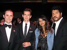 In 2008, M.I.A. started her independent record label N.E.E.T. Recordings.[84] The first artist signed to the label was Baltimore rapper Rye Rye, who performed with M.I.A. at the Diesel XXX party at Pier 3 in Brooklyn in October 2008 where it was revealed that M.I.A. was pregnant with her first child.[85] M.I.A. contributed songs for A. R. Rahman's score of the film Slumdog Millionaire, which included the collaboration "O... Saya";[86] she was nominated for an Academy Award for Best Original Song and a World Soundtrack Award for Best Original Song Written Directly for a Film for the song.[87][88] M.I.A. was due to perform at the Oscars ceremony two weeks after her Grammy Award performance, but could not as she had just given birth to her son.[89] M.I.A. is the first person of Asian descent to be nominated for an Oscar and Grammy award in the same year.