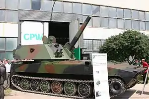 M120 Rak is a self-propelled gun equipped with an automatically loaded 120 mm mortar mounted on a tracked (SMG 120 / M120G[1]) and wheeled (SMK 120 / M120K[1]) chassis, designed by Huta Stalowa Wola (HSW). It is produced in Poland, and used by Polish Land Forces. Serial production and the first delivery started in 2017.[2]
