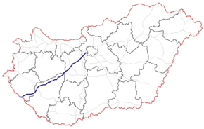 | Zala County | between Sávoly and Letenye [state border] (183 km – 234 km) |