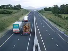 Construction of this 16 km scheme started in December 2007. The section opened to traffic on 25 May 2009, some nine months ahead of the original target completion date.[19] Like the Cashel-Cullahill project, the Fermoy-Mitchelstown scheme was redesignated a motorway during its construction, having originally been envisaged as a HQDC.[20] It was built by Roadbridge Ltd. at a cost of €174 million.[19][21]
