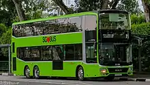Also in late 2015, a 12.8 m long custom built MAN ND323F with 3 doors and 2 staircases was built for the LTA, featuring an updated concept bodywork design.[13][14] Originally deployed to Tower Transit in 2017, it was transferred to SBS Transit in early 2018.