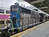 As of June 2016, the MBTA owned 125 locomotives. Of these, 85 were in active passenger service, four used for work service, and 36 inactive for various reasons.[31] The current fleet of diesel locomotives comprises a mix of purpose-built passenger locomotives (such as the EMD F40PH) and freight locomotives rebuilt for passenger use (such as the GMD GP40MCs, which were originally GMD GP40-2LWs). All passenger locomotives are equipped with head end power (HEP), though some locomotives exclusively used for non-revenue work service are not.[31]