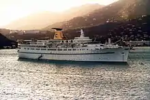 MV Lisboa was a Portuguese cruise liner owned by Portuscale Cruises. The ship was designed by Harland & Wolff as a freighter in Belfast built and ran in 1954 as Port Melbourne, a fast cargo liner for Port Line's UK-Australia express service. She was planned to be rebuilt as a car ferry, the Therisos Express, but instead became the cruise ship Danae. In later years, she was named Starlight Express, Baltica, and then Princess Danae.[1]