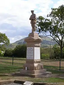 The Ma Ma Creek War Memorial commemorates three brothers: James, George and Bertie Andrews who were all killed in action in World War I. The memorial was erected in 1920 by their mother Fleurine Elsie Andrews. Although a private monument, it is used by the wider community for ANZAC Day ceremonies.[6]