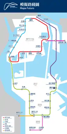 | Macau Peninsula Line (North and South sections) | Portas do Cerco | Barra | 11.7 | 10 | Planned | ||